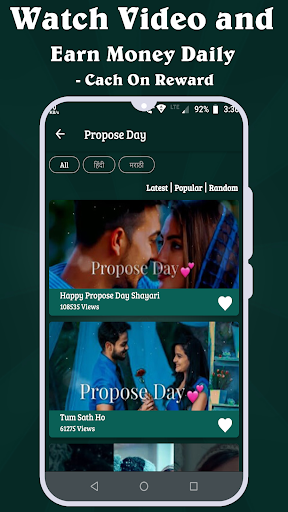 watch video status and earn cash with each day cash, come back each day to earn additional reward.